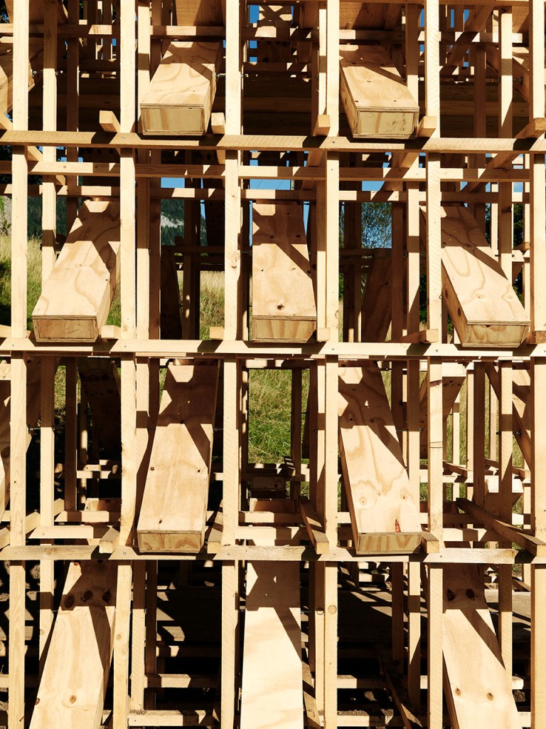 déf.2 – Acronyme de Pluies LOCalisées. La cabane Ploc est un portail, un passage entre ce monde et celui du sacré, entre l’échelle domestique et le grand paysage. Placée près d’une église, elle a pour but de prolonger l’expérience spirituelle du site en cadrant la montagne. Elle est conçue comme le lieu où les prières se réalisent.