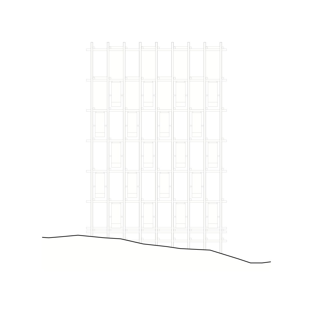 La régularité et la simplicité constructives de la trame tridimensionnelle font de ce portail à la fois un objet précieux et un cadre discret qui s’efface devant les quarante canons et le paysage environnant.